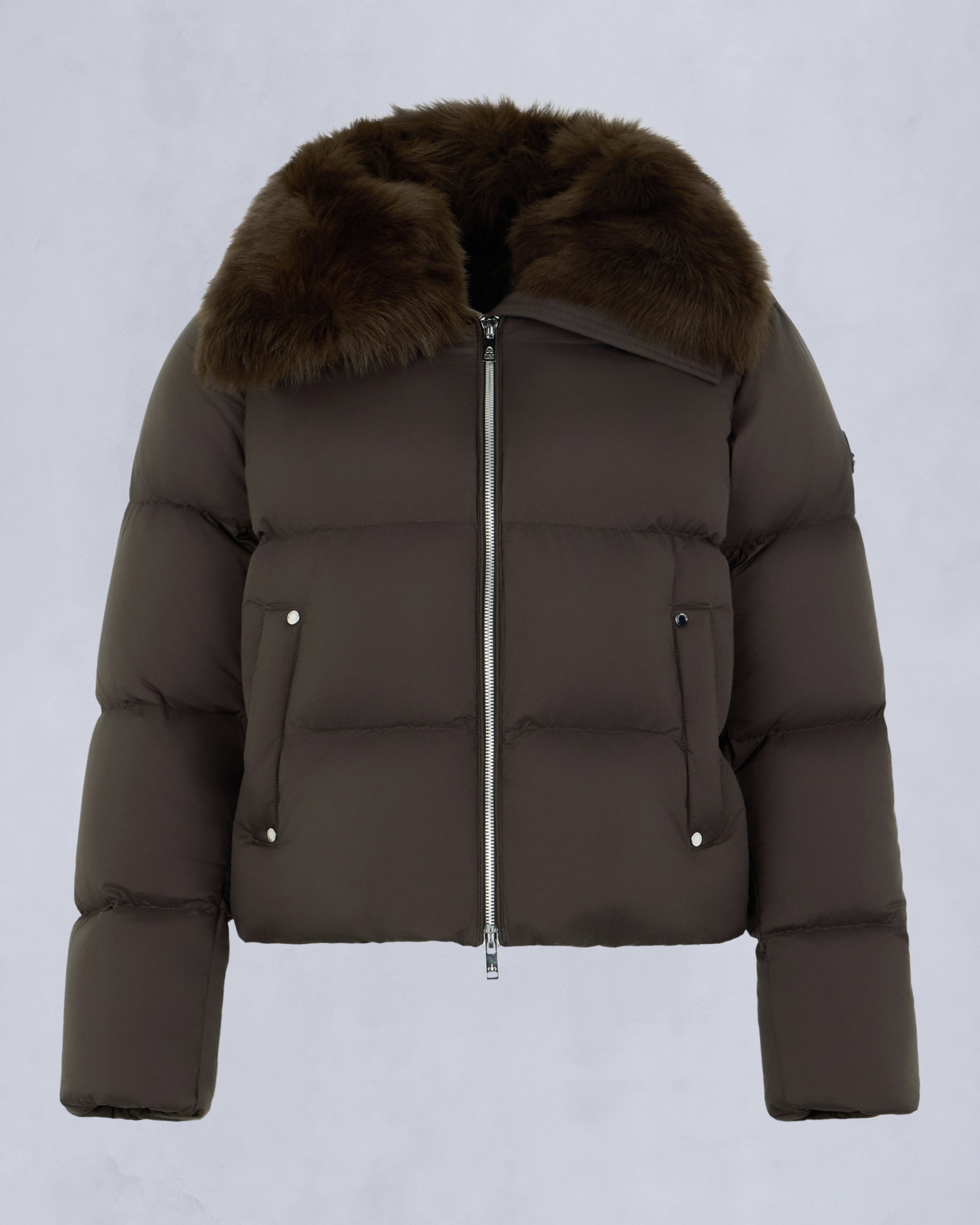 BELLE DUNE SHORT SHEARLING TRIM PUFFER-ESPRESSO