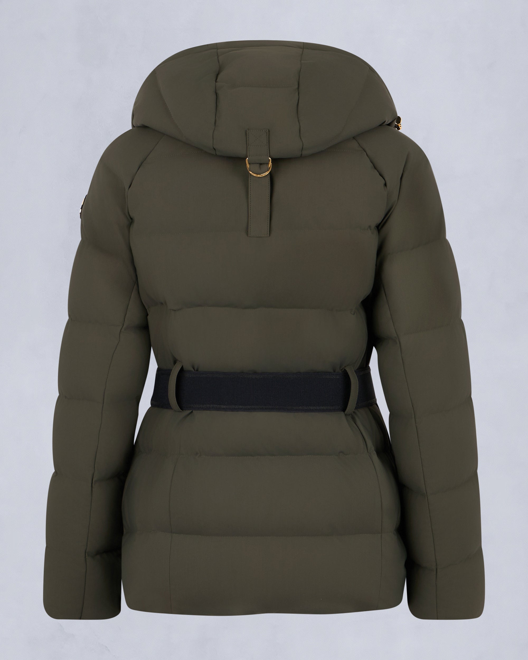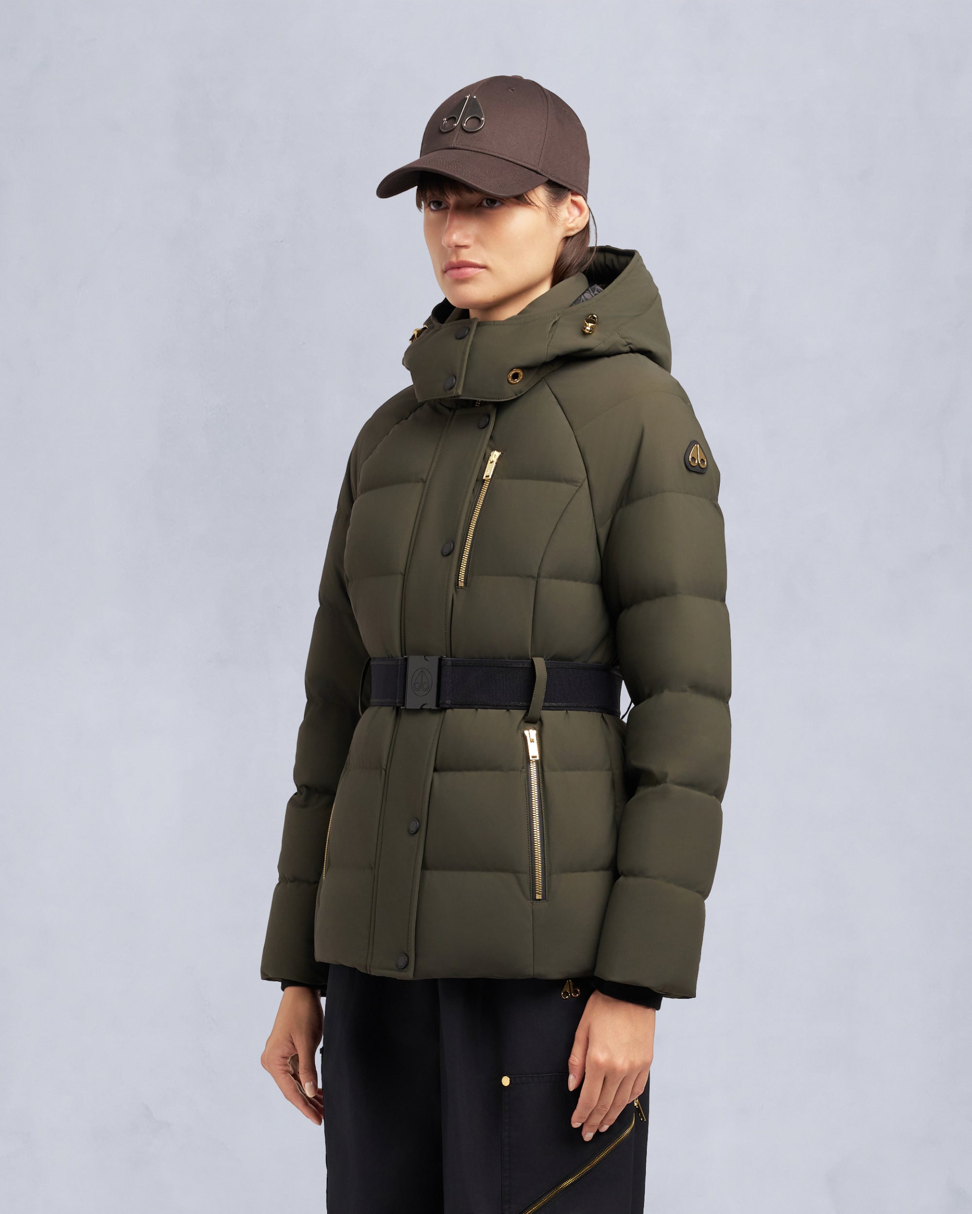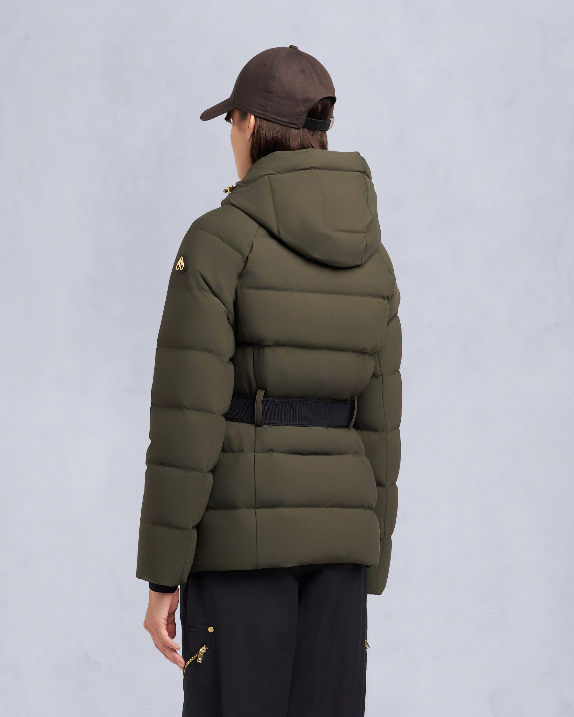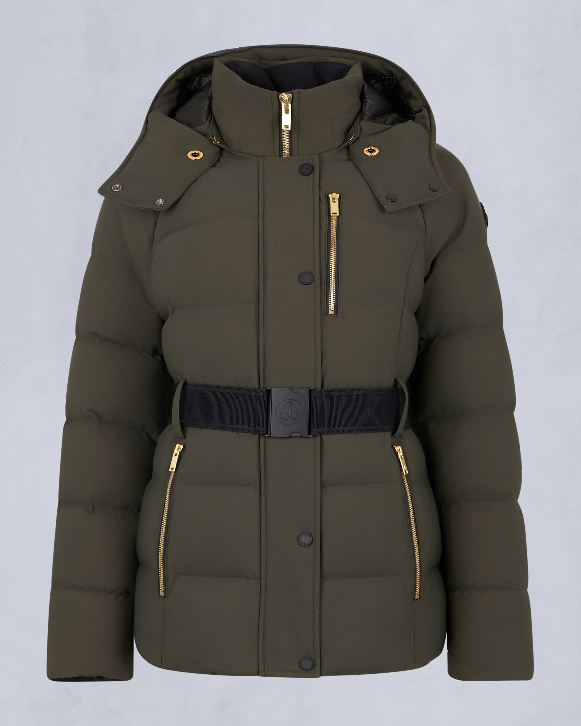 GOLD SERIES NYLUXE CAMBRIA SHEARLING TRIM JACKET-DARK OLIVE/BLACK