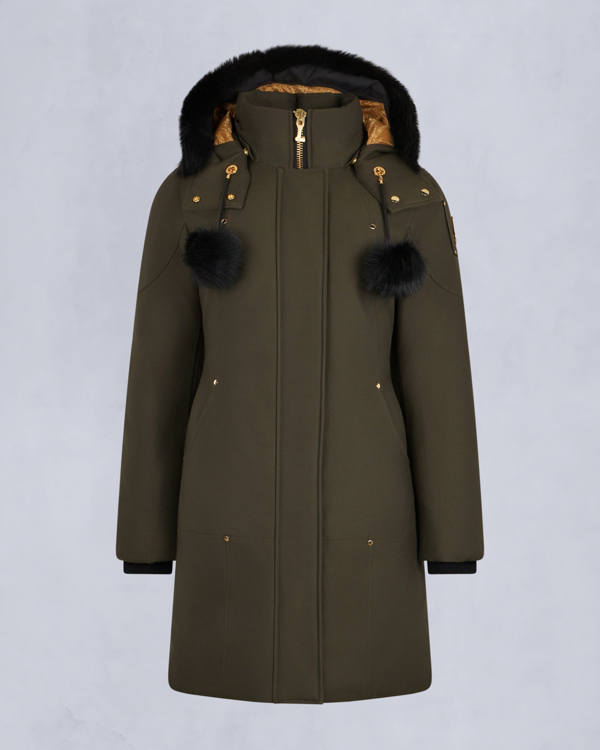 Supremely warm thanks to 90/10 duck down and a water-repellent. wind-resistant shell. the Gold Series Stirling Parka features a removable hood with detachable shearling trim and playful pom poms for added winter flair. An adaptation of the Original Stirling Parka. it represents superior Moose Knuckles craftsmanship??where premium materials. bold design. and meticulous detailing meet. Gold-plated metal logos. zippers. and accents add a signature touch of luxury. ensuring that every outing is both stylish and performance-ready. With highest rating of protection. warmth. and elevated style. the Gold Series Stirling Parka exemplifies the Moose Knuckles ethos.