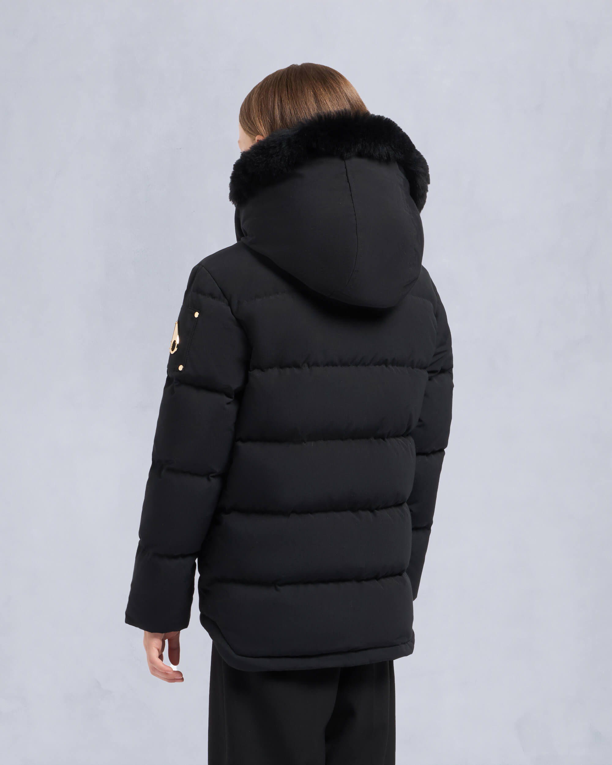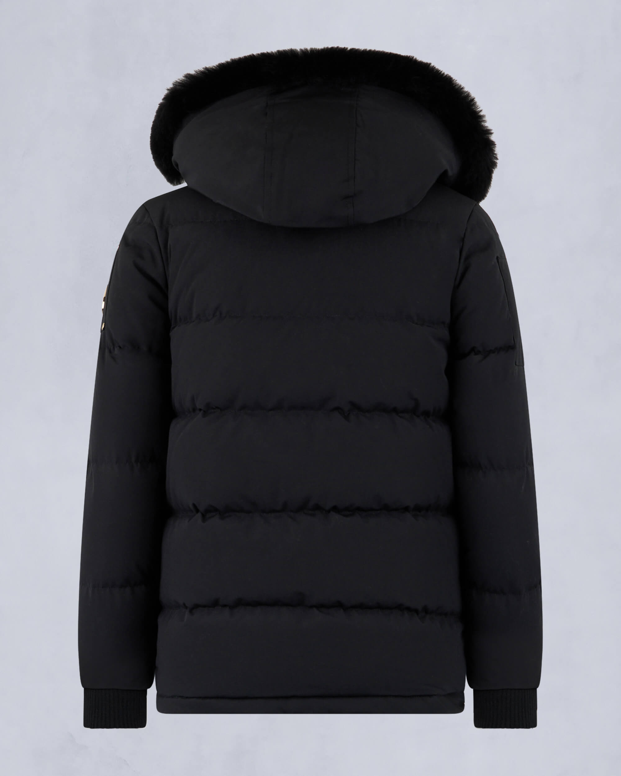 KIDS UNISEX ORIGINAL GOLD SERIES SHEARLING TRIM 3Q JACKET-BLACK/BLACK
