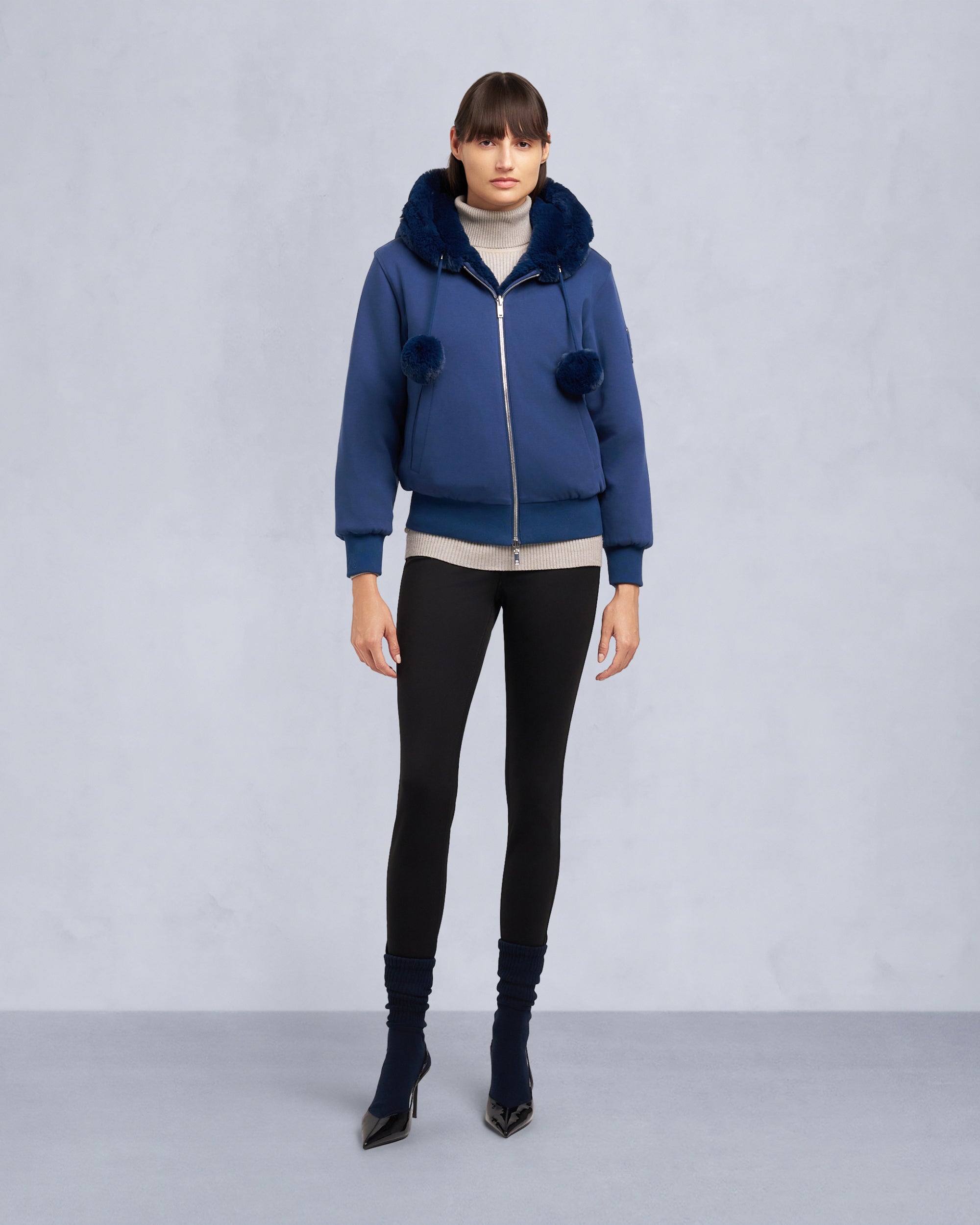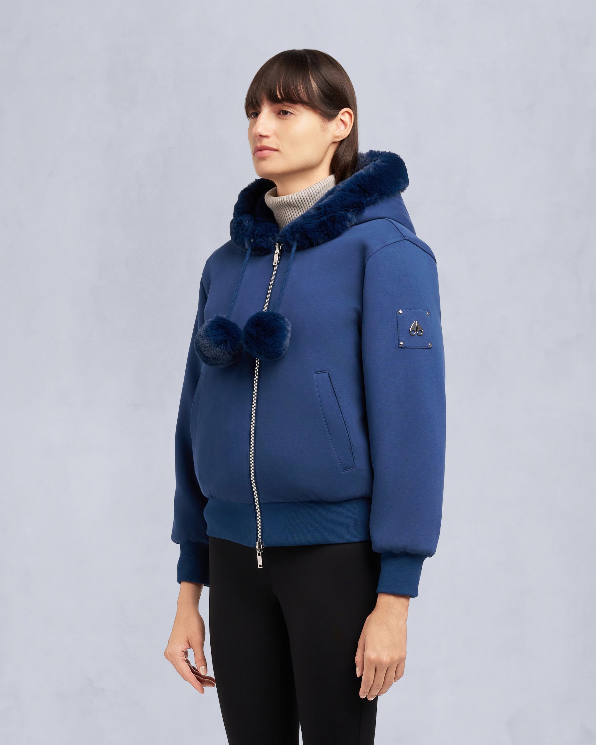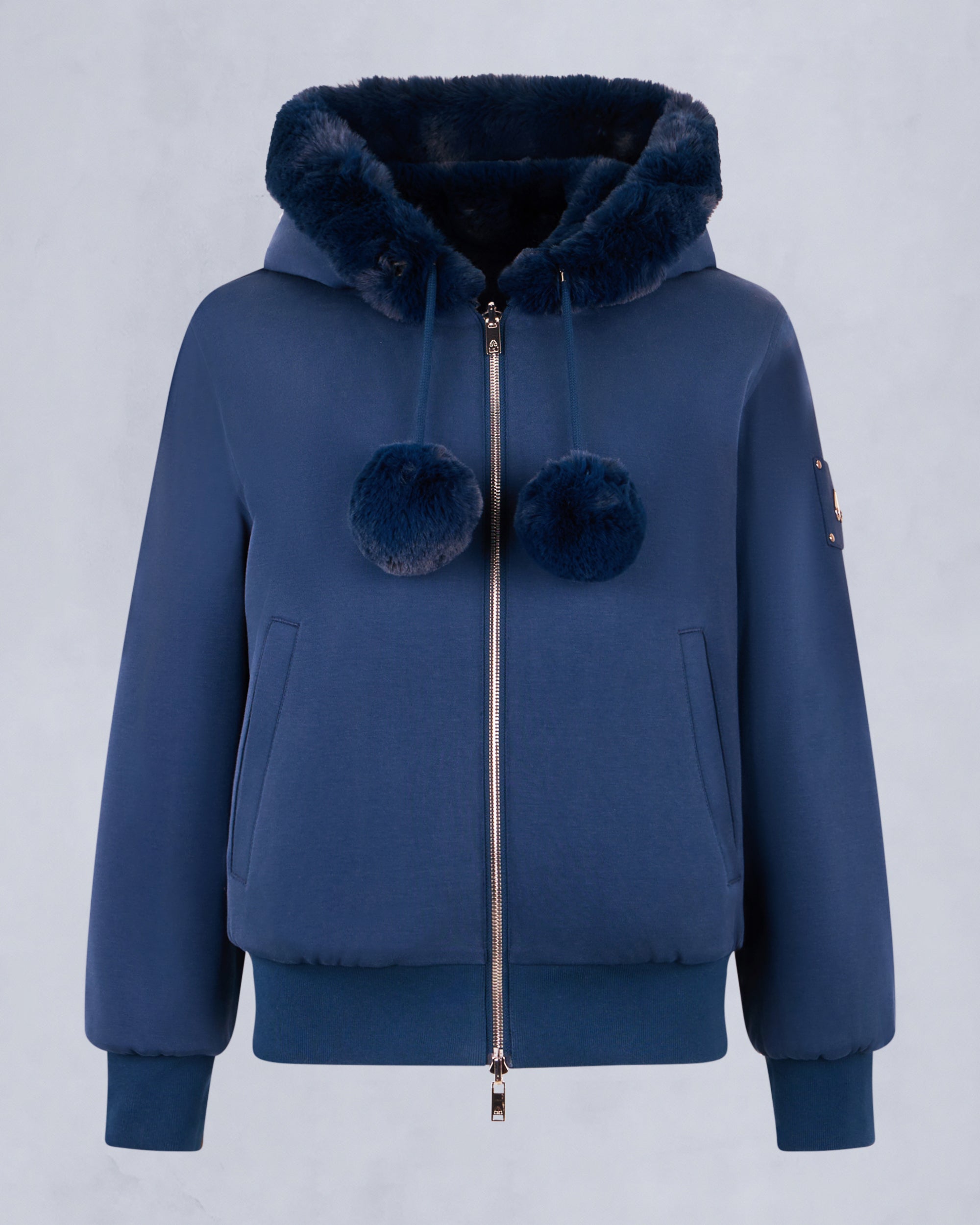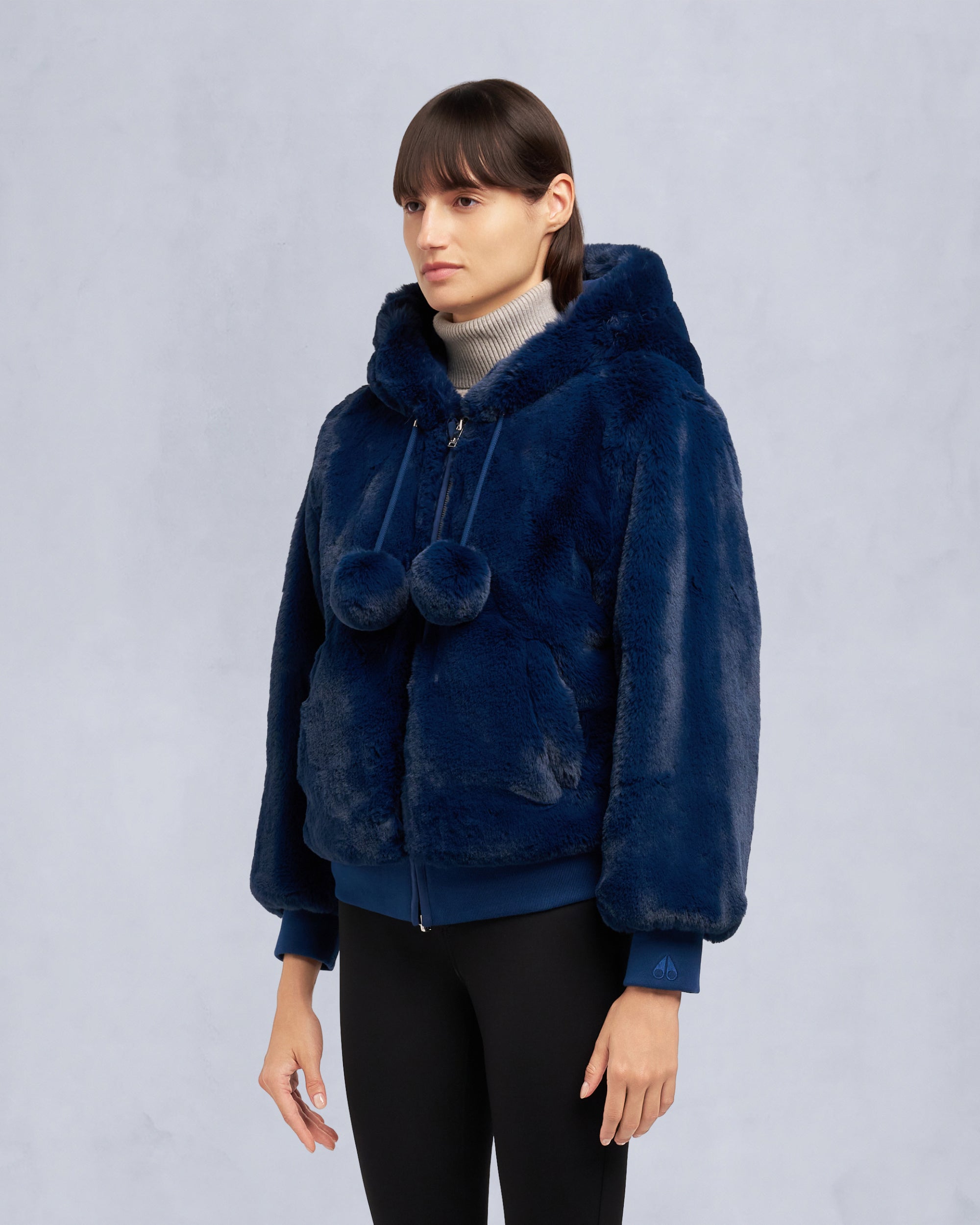 Meet the supremely plush Mealy Reversible Hoodie. the epitome of cozy versatility. Luxuriously soft to the touch. it offers two stylish looks in one garment with cotton on one side and ultra-soft faux fur on the other. Customize your look even further with the removable pom poms.