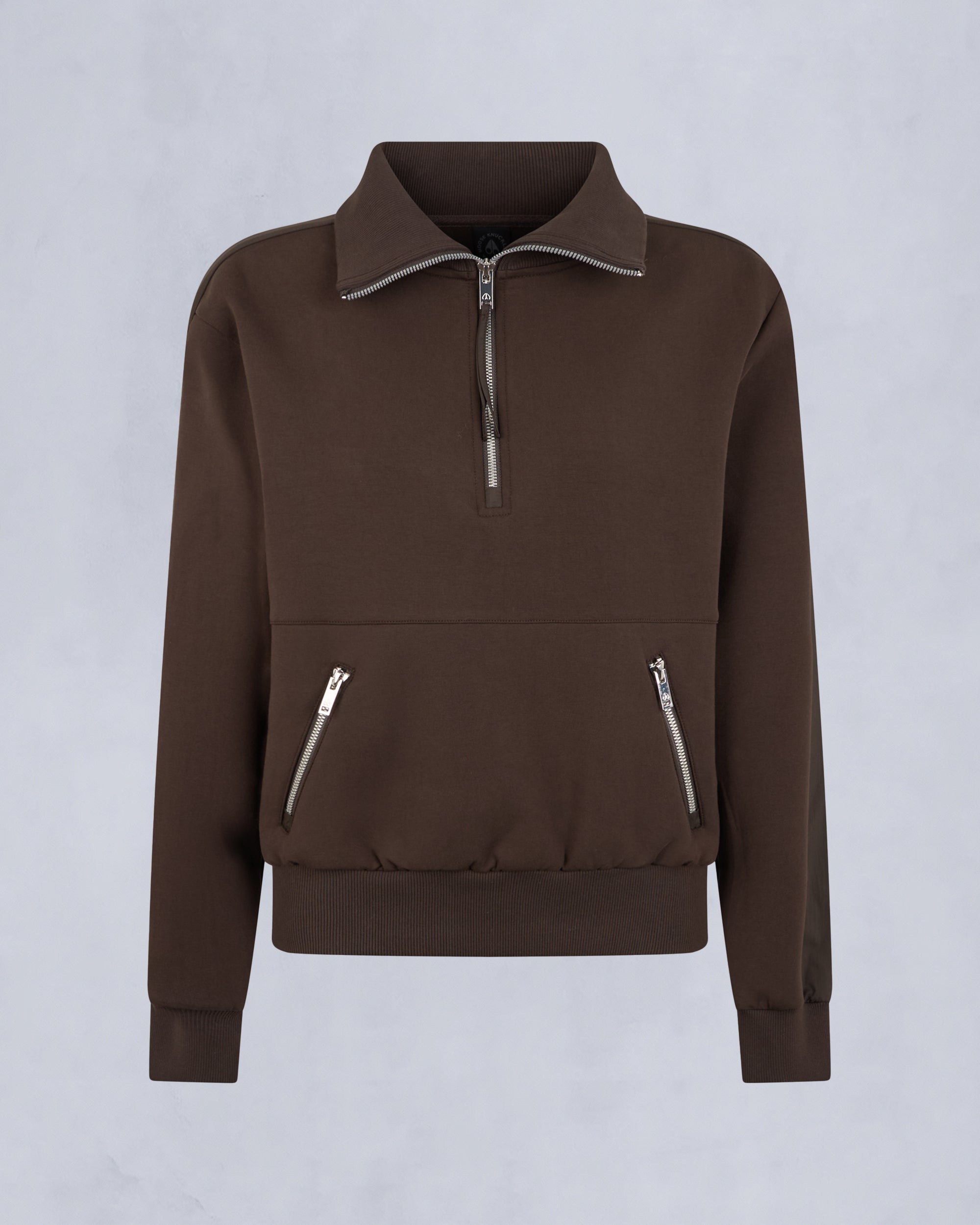 MIX MEDIA QUARTER ZIP SWEATER-ESPRESSO
