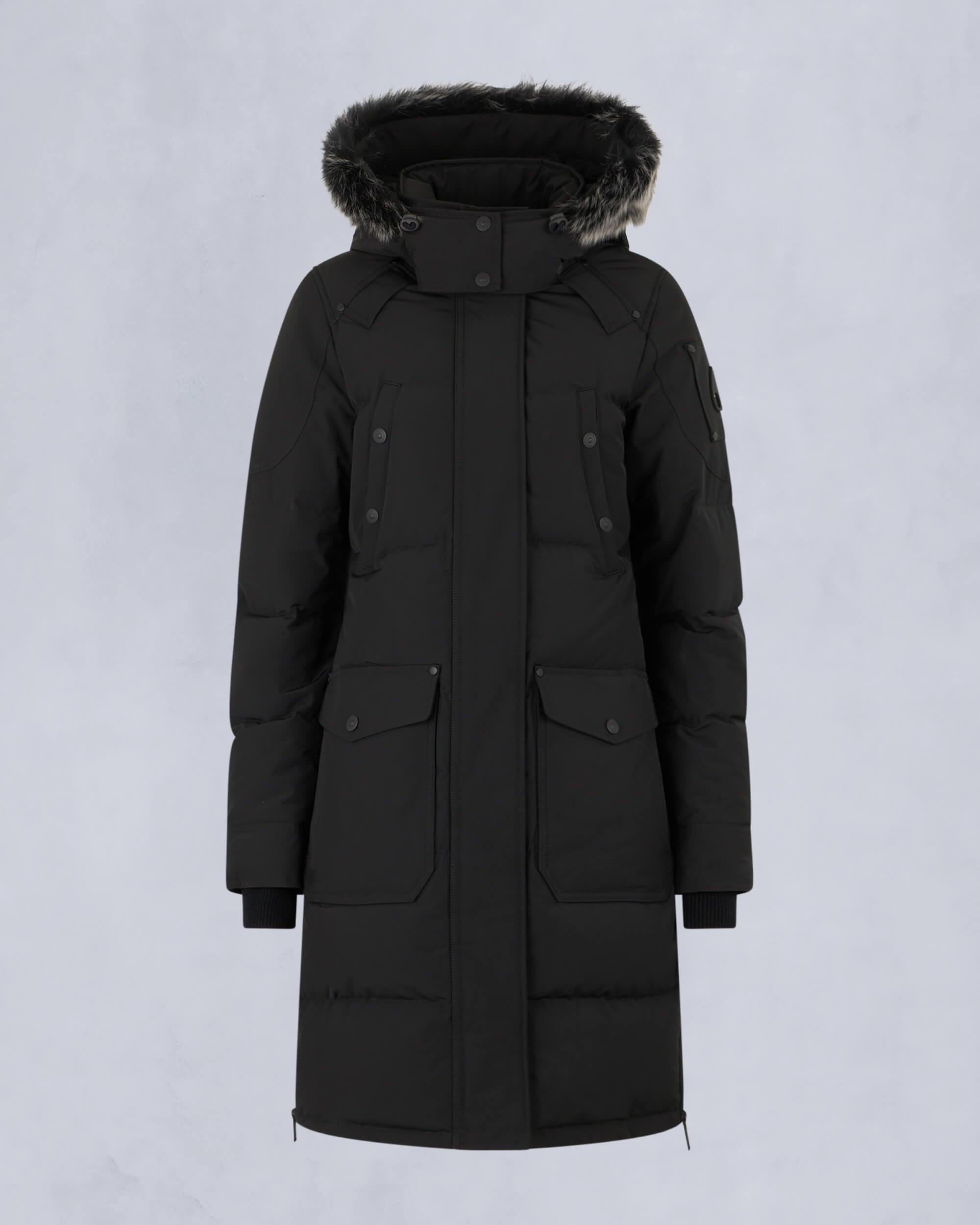 The Onyx Causapscal Parka is one of our most city-forward parka designs. known for its impeccable craftsmanship down to the last detail. Engineered to provide our highest protection rating. it’s made from DWR-treated Nyluxe fabric known for its silky finish and filled with RDS-certified 90/10 down fill that boasts 750 fill power capable of weathering the worst winter storms. It features heat-retaining hand pockets and a fully detachable shearling-trimmed hood for added protection against the elements.